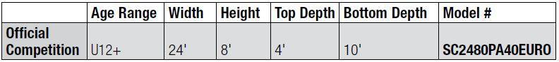 Euro styling…makes Euro goal a popular choice for soccer purists • Official 24' x 8' competition goal is constructed almost entirely of 4" diameter white aluminum powder coated extrusions with Bison exclusive QwikTrack net attachment system allowing net to be attached to uprights, crossbar and ground components • European style backstays support net at top • Meets or exceeds ASTM F2950 and ASTM F1938 • Goals include nets, net storage bag, net attachment clips and ground anchor kit • Order optional SC04WKEURO for wheel kit for 1 pair of goals • Sold in pairs • Eight-year limited warranty.