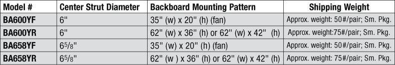 If your existing center strut ceiling mount structure is not designed to mount to backboard corners…these adapters allow installation of Bison backboards and/or ZipCrank height adjusters to your existing center strut structures • Caution! May reposition face of backboard in relationship to court lines • Select from the chart. Approx. shipping weight: 50#/pair; Sm. Pkg.