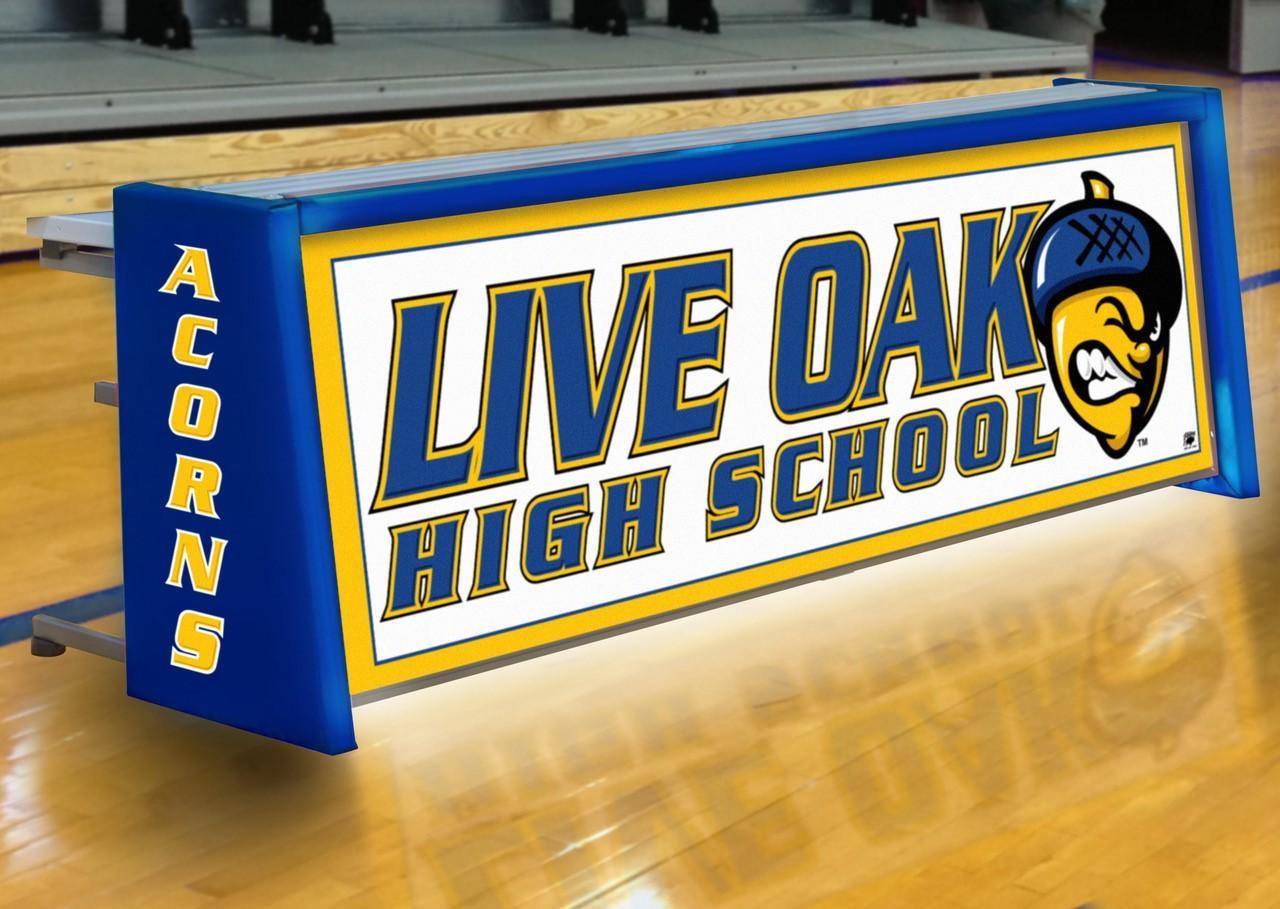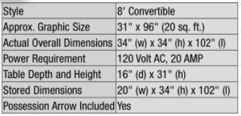 Let the light shine through with Bison Sport Pride Illuminated Scorers Tables…Tables have profile identical to Bison's full color graphic and lettered scorers table models so tables can be configured in any length and in any combination of styles to meet your facility's needs and budget • Support legs and 16" deep table top fold for easy transport and storage on built-in, non-marking casters • Front graphics are printed on a durable, translucent substrate and protected by unbreakable clear polycarbonate for a lifetime of sharp, bright images • Price includes free artwork design by Bison art department using virtually any photo quality image, logo artwork or lettering • 8' table length • Can be used either on the floor with chairs or mounted on a customer fabricated platform a few rows up in most bleachers • Ends are fully padded and can be lettered with school name • Top edge has matching safety padding • Each table includes a FREE possession arrow and a 120 volt power strip with surge protector • See Convertible drawing on page 30 for profile information • Requires 20 amp, 120 volt service • Illumination is provided by three LED bulbs (included) • Due to their custom design, scoring tables and wall padding are not returnable • Five-year limited warranty on tables except lamps.