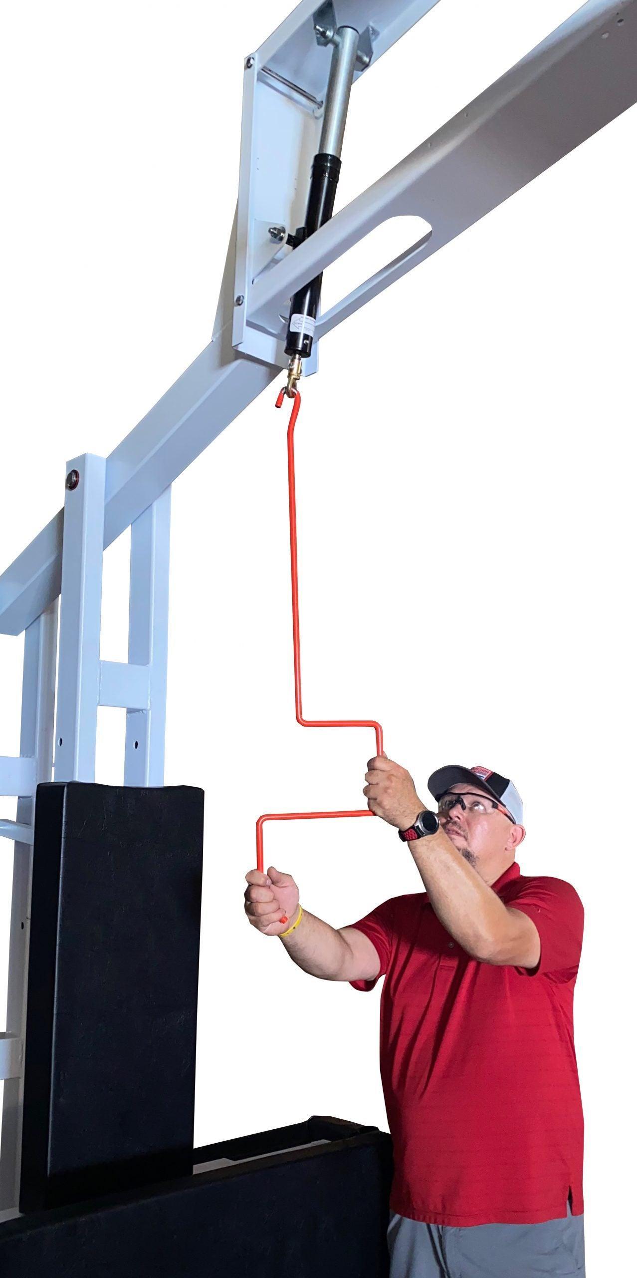 At official 10' rim height, the approximate safe play area is 50" and 42" at 7½'. When lowered for transport and storage, the total storage height is 76" to fit through most storage room double doors or garage doors.